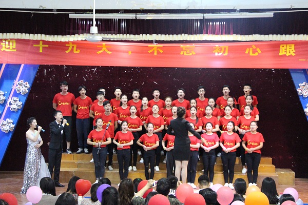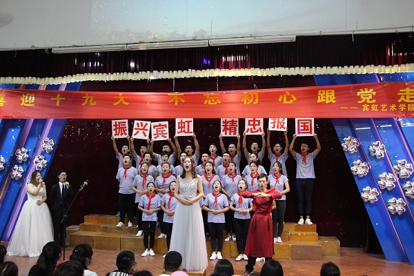 9月28日晚,宾虹艺术学院在5103教室举行了“青春喜迎党的十九大,不忘初心跟党走”2017级新生班级大合唱比赛。宾虹艺术学院 副院长丁蓉、党总支副书记张伟等6位老师担任评委,2017级全体新生以及团学干部们也在现场为同学们助威加油。