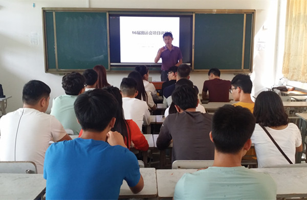 学校第十六届田径运动会即将召开,为了使各学院的运动员们了解田径运动规则,在运动场上能更好的展示风采,9月28日,公共教学部组织召开第十六届田径运动会项目规则说明会。会议由公共教学部体育教研室主任朱亚伟主讲,各学院学生会体育部正副部长参加。