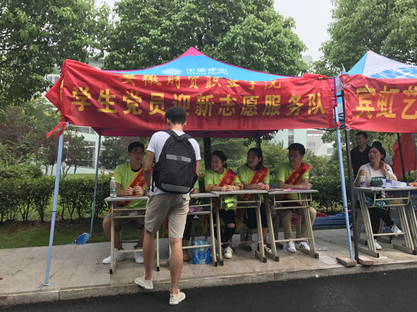 在新生报到现场,我们看到党员志愿者忙碌地为新同学提供相关咨询,发放免费的矿泉水,引导新同学办理入学相关手续,帮他们搬行李物品并带领他们购买生活用品,熟悉校园环境等。在迎接新同学的过程中,学生党员们主动分享大学心得,介绍学校办学特色及理念,帮助学弟学妹熟悉学习和生活环境,为2017级新同学今后的大学生活打下良好基础。