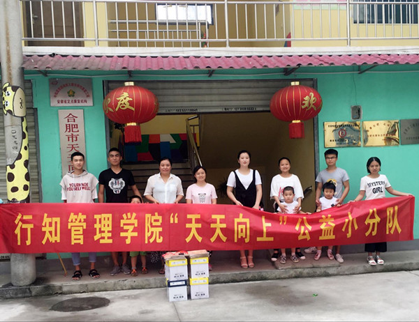 今年暑期,校团委在全校范围内发起了大学生志愿者暑期 “三下乡”社会实践活动。行知管理学院团总支本着“受教育、长才干、作贡献”的宗旨,组织开展了“天天向上”公益小分队暑期志愿服务实践活动,深入基层一线,用自己的爱心和能力帮助需要帮助的人群。