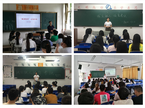 近日,朱熹文旅学院各班级积极开展“诚信做人、诚信考试”为主题的口语训练、主题班会、诚信签名、等教育宣传系列活动,积极倡导学生牢固树立刻苦学习、端正考风、严肃考纪,诚信考试的学习理念。