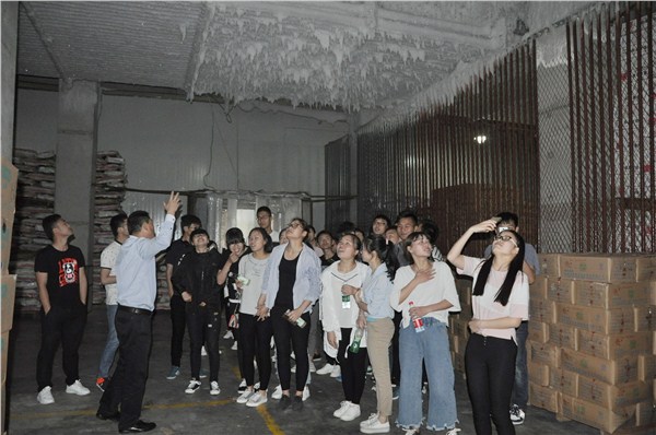 实训课共分为三个部分,苏卫东带领同学们首先参观了整个冷链物流园区,介绍冷库分布情况和业务开展情况,并向同学们讲述了和合冷链的创业和发展历程;随后,参观了制冷的核心部门技术保障部,同学们来到液氨制冷机房,看到庞大的制冷设备,苏卫东和技术保障部经理向同学们详细讲解了液氨制冷原理和制冷设备工作流程。苏卫东着重强调了安全生产的重要性,给同学们讲解液氨制冷机房的消防安全措施,演示了机房如何采取灭火措施,让安全生产的理念深入同学们的内心;最后,苏卫东带领同学们进入冷库学习,同学们第一次进冷库充满了好奇,在2度左右高温库,苏卫东介绍了仓储货物的类型、库房特点和进出库流程等,在零下18度的低温冷库,同学们认真聆听苏卫东对低温冷库的专业讲解。