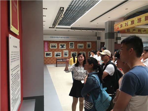 参加此次教学实践考察活动的同学来自各二级学院的2016级学生,概论教研室主任徐莲、思修教研室主任谢征宇及部门专职教师随行前往。徐莲表示,上课的时候,我们的老师讲改革开放历史,讲经济体制改革、讲农村土地承包、讲当前土地流转,希望同学们能对中国的改革开放有更深的体会和了解。小井庄作为中国农村包产到户的发源地,又在同学们的身边,前往实地参观考察,教育的意义和效果非比寻常。