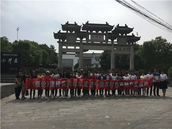 5月24日下午,马克思主义学院《概论》课程开展实践教学活动,结合时下教学进度“改革开放与中国特色社会主义”的教学章节,在2016级学生中选派代表集中前往学院思政教育基地肥西山南镇小井庄,考察中国改革开放萌芽期农村包产到户的历史。