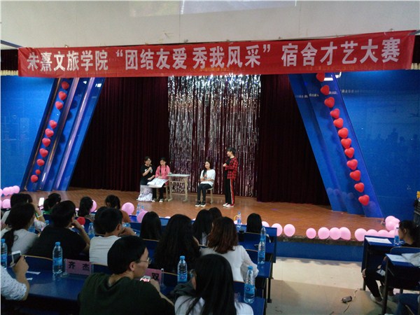 5月10日晚,朱熹文旅学院第四届“团结友爱,秀我风采”宿舍才艺大赛在5103教室举办。学生处、大位会计学院、茂荫财金学院、朱熹文旅学院相关教师及朱熹文旅学院学生秘书汪双担任比赛评委,比赛由朱熹文旅学院宿管部主办。