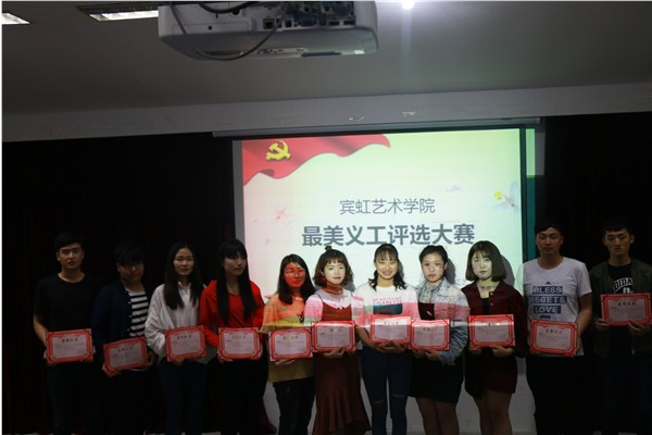 在这场最美义工的评选活动中,宾虹艺术学院师生共同回顾了长期以来在合肥市瑶海区笑童颜特殊教育学校、在合肥高铁南站、合肥市轮椅马拉松比赛、社区等地点开展的志愿帮扶和志愿服务,以及依托胡文传艺术分队、合肥市星火志愿者家园等社会团体开展的社会实践和专业培训等。分享会上不断响起热烈和鼓励的掌声。