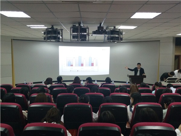英语口语(专业组)技能比赛只面向商务英语专业同学,2015、2016级在校生可以报名参赛。由于报名人数较多,比赛之前进行了初赛遴选。比赛设置了职场描述和情景交流两个环节组成。职场描述部分,参赛者随机抽取一幅反映行业、企业业务发展或社会、经济等热点问题的统计图表或图片,根据相关说明,用英语对其进行口头描述和观点阐述。情景交流部分,参赛者随机抽取某一场景题目,根据题目设定的角色,与主试官进行一对一的英语现场问答交流,展现参赛者的情景应变能力和口语交流能力。