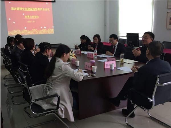 4月14日,朱熹文旅学院组织召开2017年酒店管理专业建设指导委员会工作会议,朱熹文旅学院院长刘葆、副院长钟晓鹏,旅游管理教研室专任教师以及来自酒店行业的各位专家参加了会议。