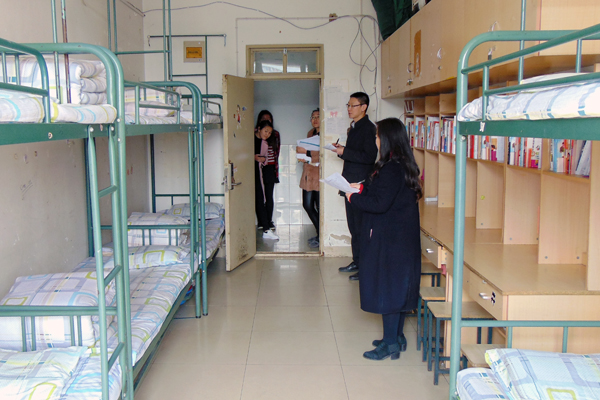 在学院第十个安全文明卫生活动月拉开帷幕之际,2月27日,朱熹文旅学院开展了以“安全文明你我他 宿舍卫生靠大家”为主题的样板宿舍评比活动,该院党总支副书记宋凌云组织全体辅导员参加了评比活动。