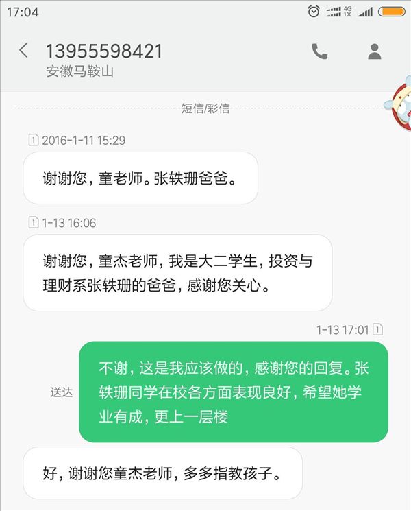 “寒假将至,您的孩子也即将结束本学期期末考试回家和您共迎新年。为沟通信息,加强家校联系,共同营造平安祥和成长环境,现将寒假期间有关事项提示••••••” 茂荫财金学院在同学们离校前,通过班会提示大家注意寒假交通和人身安全,适当参加社会实践活动。近日在学生离校期间,又通过QQ群,向同学们及家长推送了《寒假温馨提示》,请家长阅读。此外,各班级还有针对性地挑选部分学生家长,一对一通过手机短信发送寒假提示,并请家长回复班级辅导员老师,加强家校沟通联系。