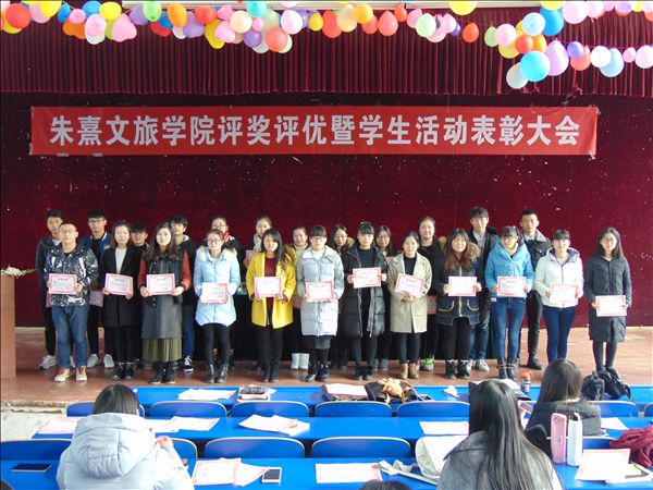 12月28日中午,朱熹文旅学院在5103教室举行2016年评奖评优暨学生活动表彰大会。朱熹文旅学院院长刘葆,党总支副书记宋凌云,副院长钟晓鹏,教研室主任田南竹、钱晓慧、陈伟及2016级新生辅导员出席了会议,学生秘书汪双主持会议并宣读了获奖名单。