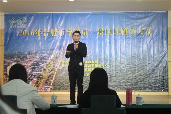 此次大赛由合肥市旅游局主办,安徽省旅游培训中心、合肥市旅游协会承办,既是安徽省导游大赛前的赛前练兵,又是为全省的导游大赛推荐优秀选手。比赛分中文导游、外语导游和景区讲解员三组,共有形象风采展示、导游词创作、现场讲解、知识问答、才艺展示等五个环节的分项比赛,全市多家旅行社、旅游景区的近百名选手参加了比赛。