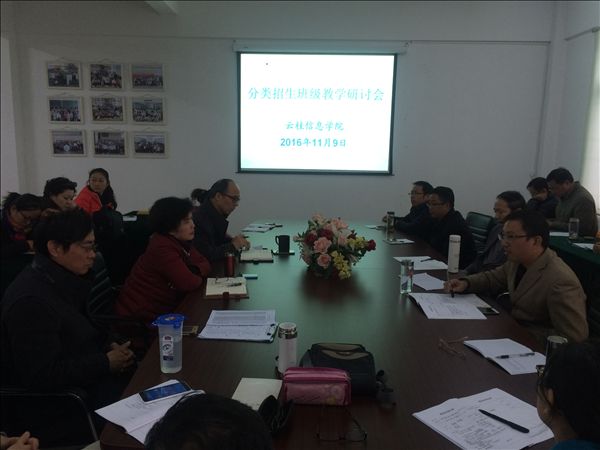 11月9日,云桂信息学院在综合楼三楼会议室组织召开分类招生班级教学研讨会,院党总支书记程众、副院长张成叔、姚成以及全体专兼职老师参加了研讨会。会上,各位老师分别从不同侧面结合日常教学工作,根据班级实际情况,列举真实事例,就如何安排授课计划、增强课堂教学趣味性、调动同学们学习主动性、加强师生之间沟通、督促课后巩固复习等问题做了经验交流。大家在分享成功经验的同时,也针对分类班级教学质量不高、学生缺乏钻研精神、动手能力较弱等问题进行了深刻反思,提出了工作中存在的困惑,并共同商榷改进的良策。张成叔在总结时强调:一是要有大爱精神。真心爱护每一位学生,教育入心,关爱他们成长;二是发挥分类学生的优势。分类学生情商较高,多才多艺,充分调动他们参与活动的积极性,以此来培养他们的责任心和自信心;三是加强引导。在教学工作中讲究科学,增强学习思考和理想前途教育,分步完成工作目标。