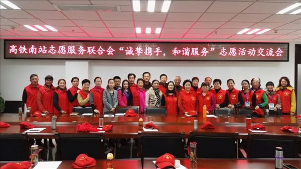 宾虹艺术学院学生秘书王思、中特会会长褚凤凤、秘书长耿直参加了合肥高铁南站志愿服务联合会“诚挚携手,和谐服务”志愿活动交流会。高铁南站志愿服务联合会会长裴慧丽和高铁南站负责人杜明生科长向我院志愿者表示肯定和感谢。宾虹艺术学院经与高铁南站协商,表示除了志愿服务外,还将为高铁南站提供写作、礼仪、文秘三项内容的培训,并从今年11月份开始,每周一下午和每周五上午,分别派出10名志愿者参与和指导高铁南站的志愿服务活动。
