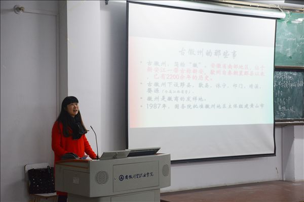 11月1日,宾虹艺术学院举办第四期翡翠艺术大讲堂。党总支副书记丁蓉以“我眼中的徽州”为题从美学角度分享了皖南地区的风土人情。