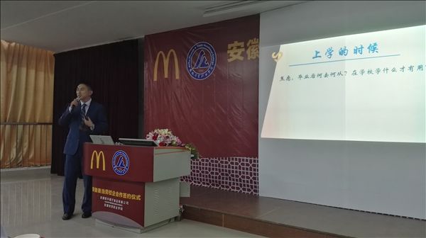 11月9日,安徽联升餐厅食品有限公司(麦当劳中国发展式被特许经营商)总经理杜延松先生走进《特许经营管理》教学课堂,与2015级连锁经营管理专业的学生们分享“麦当劳品牌文化”知识。
