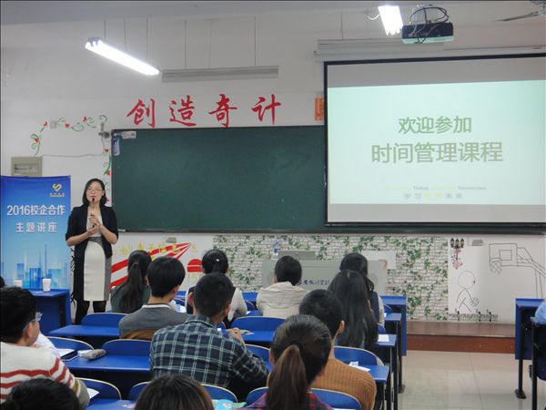 10月17日,在第十期高管进课堂活动中,安徽/山东/甘肃联升餐厅食品有限公司(拥有麦当劳安徽经营权)人力资源经理吴林女士应邀走进连锁1501班和1502班的《特许经营管理》课堂,以“时间管理”为主题与同学们分享关于时间管理的效能。