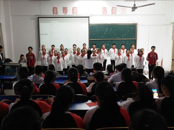 9月28日中午,中专部“颂祖国 迎国庆”新生大合唱比赛在阶梯教室举行,中专部主任张爱民,副主任徐道根、杨声等担任评委。