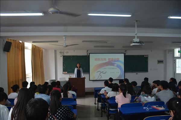 9月22日,学院“走下网络、走出宿舍、走向操场”体育锻炼宣讲会在6102教室召开,基础部主任王静做“锻炼自我,健康中国”主题讲座。