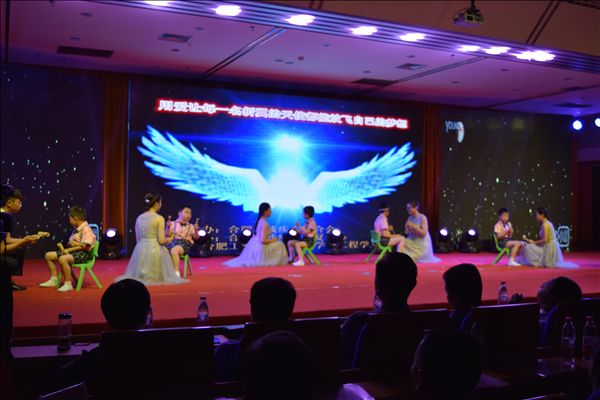 演出中,我院的志愿者们和天天向上康复中心的孩子同台表演了舞蹈《虫儿飞》,并作为整场演出的开场舞,认真的表演、美丽的展现,得到了现场家长和小朋友的热烈掌声。整场演出共有15个节目,既有互动歌曲,也有师生合演的歌舞剧,以及诗朗诵、手语表演等,展示了孩子们的热情与天真,以及对美好生活的向往。