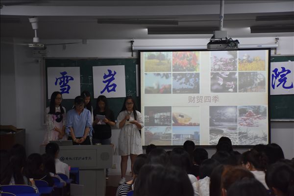 比赛具体由雪岩贸易学院学生会宣传部组织举办,分两个环节,第一环节为“相遇财贸”,即“财贸印象”主题PPT汇报,参赛团队要对自己印象中学院进行介绍;第二环节为“相知财贸”,参赛团队通过完成对学院相关知识的回答,展示自己对学院办学、人才培养、校园生活、校园文化等方面的认知。
