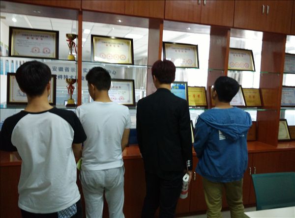 在8304实训室,电子信息系展出了该系参加安徽省职业院校技能大赛、全国职业院校技能大赛等各级各类比赛的成绩与收获,营造氛围,通过获奖选手、技术能手等典型案例,引导广大同学树立技能光荣、劳动光荣的理念,传播职业教育正能量。