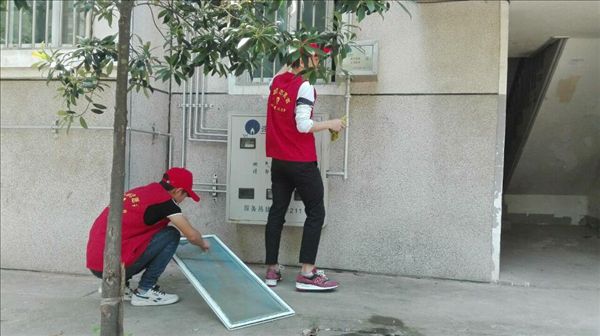 上午,“职业教育便民服务进社区”在肥光幸福园小区举行。旅游管理系青年志愿者将小区环境进行了清理,并在居委会工作人员的带领下前往孤寡老人家中慰问。