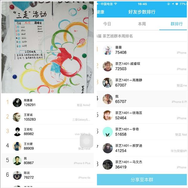 如何让同学们主动参加锻炼、真正树立“每天锻炼一小时、健康生活一辈子”的健康生活理念,艺术设计系在辅导员例会上开展了认真热烈的讨论,结合同学们的兴趣点及活动的可行性,该系开展了学生徒步健康分享活动。五一假期后,该系体育部拿出了活动方案,并开始正式实施,2014、2015级同学们通过关注“QQ健康”平台加入到统计数据中,由班级体委负责统计班级群中步数周排名前三的同学,每月统计四次,月末汇总一次上报体育部,体育部月末统计出大一、大二两个年级的前三名(共6人),并发放奖品小米手环。