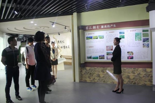交流期间,蔡红一行参加了学生宿舍、学院文化广场和人才培养成果展厅,聆听了乐途旅游协会关于校园和展厅内关于徽商部分的讲解,对我院的学生工作表示赞扬。