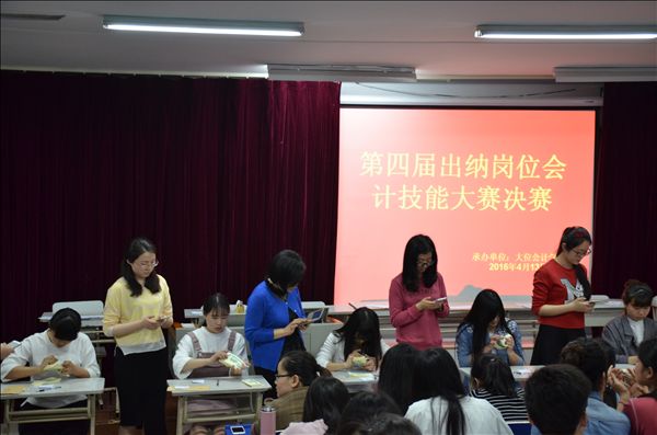 4月13日晚,2016年职业技能节大位会计学院第四届出纳岗位会计技能大赛在6102教室举办决赛,比赛内容为点钞和填制凭证。