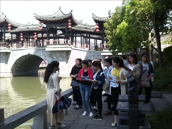 18日当天,同学们在钟晓鹏的带领下抵达三河古镇,在景区游客接待中心,景区管委会导游部经理李曼婷向同学们介绍了景区为同学们制定的实习方案,并带领同学们实地熟悉了常规的景区游览线路,介绍了三河古镇创建全国5A级景区的主要过程,强调了主要景点的讲解要点和导游技巧。