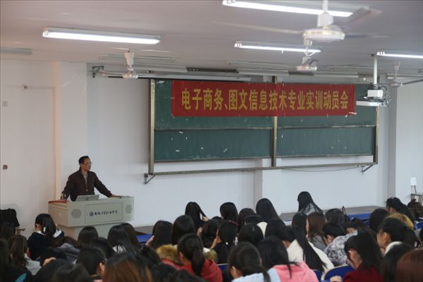 本学期,电商1401-1403、高职1204、1205和图文1401等六个班将于3月至6月开展专业综合实训。3月16日中午,雪岩贸易学院在6103教室召开实训动员会,对实训工作进行安排,并提出实训要求和目标。