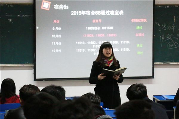 会上,该系宿管部从“6S”认证、卫生和安全三个方面回顾总结了上学期男女生宿舍的整体情况,通报了宿舍“6S”认证的通过情况,倡议广大同学“卫生从我做起,用心呵护就寝环境”。