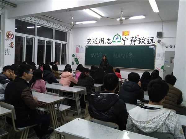 12月28日晚,2015级新生班级以“诚信考试,从我做起”为主题开展了口语训练,从做人、求知、德行等多方面发表了关于诚信的观点和事例。不少同学还郑重宣誓,表明自己秉承诚信行为的决心。