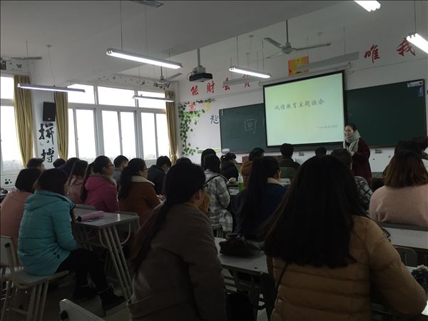 各班级的主题班会采取多种形式的教育形式,有的班级从诚信的小故事入手,探讨对社会主义核心价值观推广词“诚立身”的理解;有的班级从学院的教学管理、学生管理的规章制度入手,强调了制度约束;有的班级通过列举往年的考试作弊行为的后果,对同学们进行警醒。