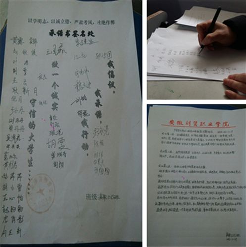 该系全体同学在《以学明志、以诚立德、严肃考风、杜绝作弊倡议书》上签字,做出了诚信考试的庄严承诺。
