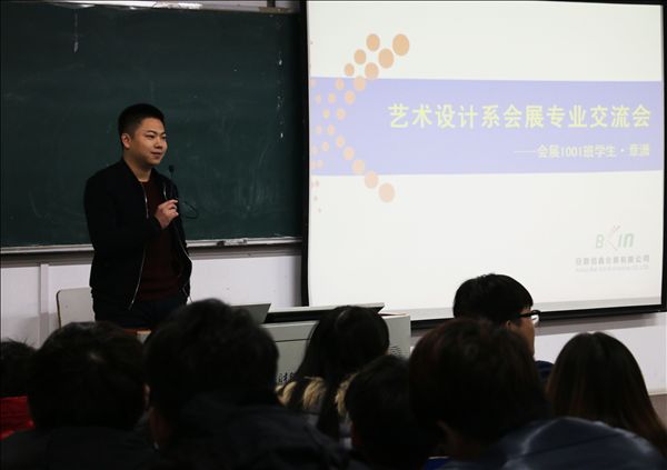 12月14日晚,本学期艺术设计系翡翠艺术大讲堂最后一讲主题为“学习会展,创造精彩人生 ”,主讲人为我院会展专业2013届毕业生章潇,现供职于合肥佰鑫会展公司。系党总支副书记丁蓉主持了讲座。
