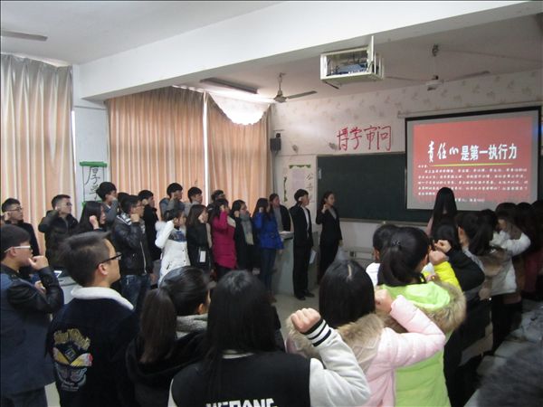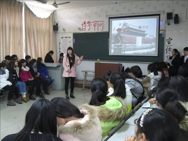 主题班会以感人肺腑的视频“安徽涉外学院何九春救人案例”引出“责任与生命”的主题,从“知责任,明责任,负责任”三个方面展开,采用朗诵、歌曲、情景剧、小品、探讨、交流、宣誓等多种形式诠释责任的伟大内涵,环环相扣、层层深入、引人入胜。主题班会结束后,辅导员汪双老师对主题班会做了精细的点评总结,勉励每位同学对自己负责、对宿舍负责、对班级负责、对家庭负责、对国家负责、对社会负责,让生命更厚重,让人生更精彩。