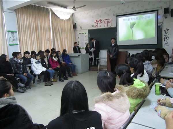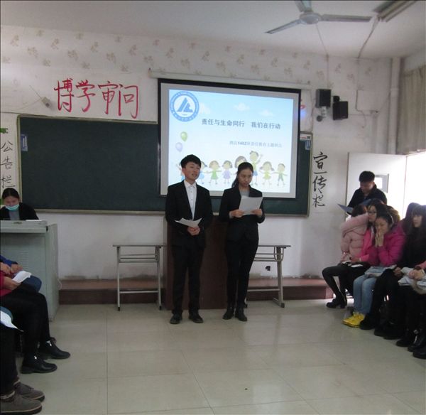 12月10日中午,旅游管理系酒店1402班在1109教室召开“责任与生命同行,我们在行动”主题班会,旅游管理系党总支副书记宋凌云、14级、15级全体辅导员观摩了这次班会。