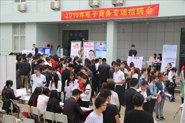 就业服务活动月期间,雪岩贸易学院通过与安徽省青年电子商务产业园对接,于10月25日在校园内组织举办了2015年电子商务专场招聘会。园区内30家企业前来学院招贤纳才。