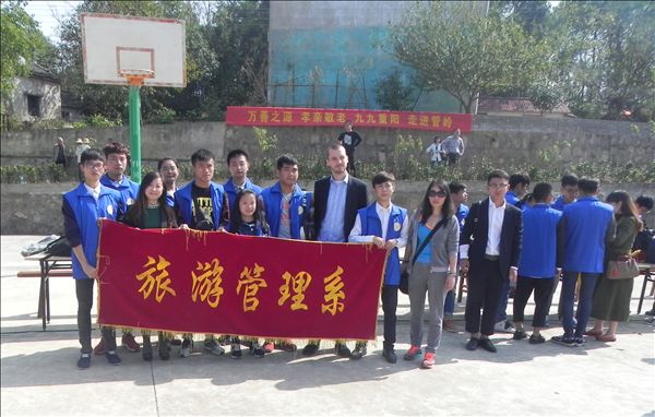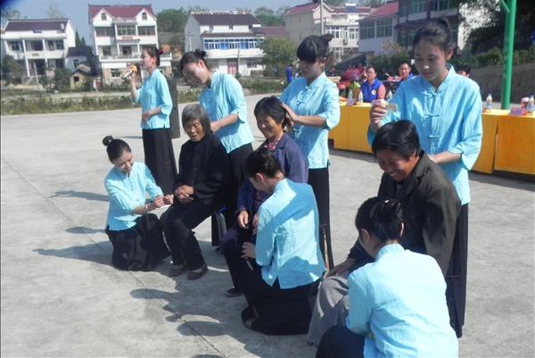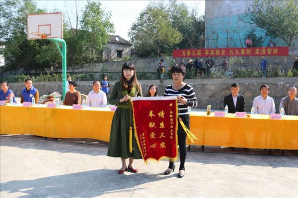 重阳节前,旅游管理系、艺术设计系师生近40人前往舒城县阙店乡官岭村,为村里的五保、孤寡老人献上节日的祝福。