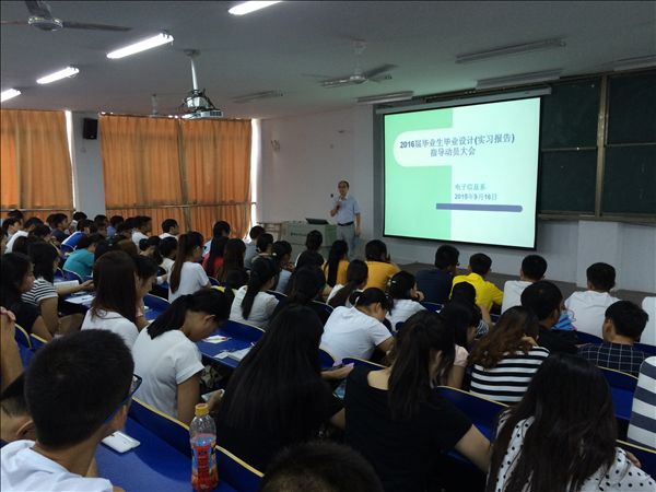 9月16日中午,电子信息系在6103教室召开2016届毕业生毕业设计动员会,副主任张成叔、姚成,指导老师和全系2016届毕业生参加了会议。