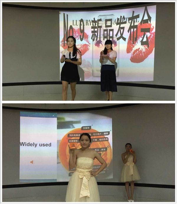 大赛要求选手从产品名称与客户群、产品作用、特点与销售优势等方面全英文进行产品描述,展示了良好的专业英语功底。在近3个小时的比赛中,商务英语1301、1302、1303班的16组参赛选手以精准的翻译、灵活的应变模拟展示了对外贸易活动中的场景。