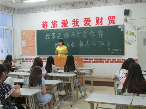 2014级同学在晚间的口语训练中组织开展了“诚信考试 怎么看 怎么做”的话题讨论,各班通报了旅游管理系诚信考风、连续两年考试零违纪的现状,呼吁全体同学认真备考、诚信作答。此外,各班级辅导员老师还组织带领班级同学学习了《学生手册》中有关考风考纪、违纪处分等相关条例,通告了近年学院处理作弊的学生案例,进一通晓、告知、警戒学生考试作弊带来的严重后果。