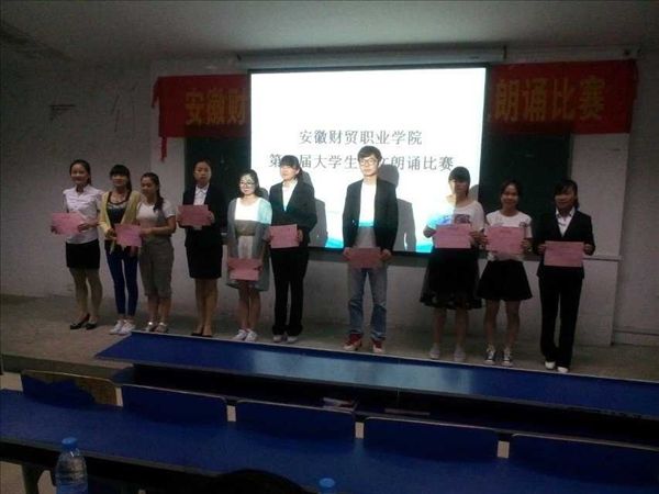 科研处副处长席清才,基础部主任王静、马凌云老师、张智老师,旅游管理系汪双老师作为评委出席了朗诵大赛。同学们不仅饱含深情的诵读了艾青的《大堰河 我的保姆》等经典诗作,而且比赛还涌现出了许多情感真挚、文笔清新、立意深刻的原创作品。最终,电子信息系移动1401班王倩、周玉林凭借原创作品《中国梦,我的梦》以及富有感染力的诵读获得全场最高分92.7分,荣获一等奖。财税金融系农金1401班周倩倩、旅游管理系旅游1301班许凤荣获二等奖,旅游管理系酒店1402班沈依然、大位会计学院国会1402班高洁、雪岩贸易学院营销1401班赵代萍荣获三等奖。