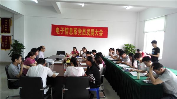 6月3日下午,电子信息系党总支2015年上半年党员发展及党员转正大会在系办公室召开,教师党员、预备党员和党员的发展对象参加了会议。系党总支书记程众主持会议。