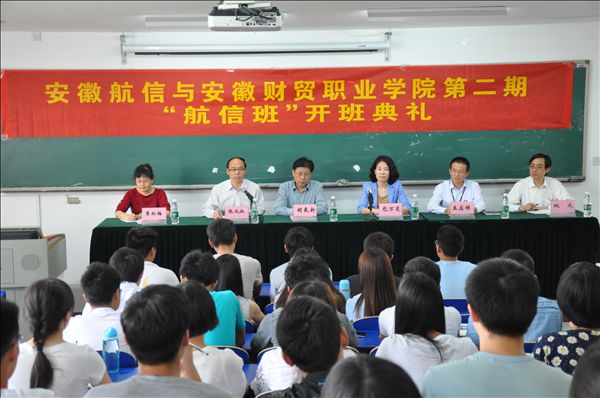 5月13日下午,学院电子信息系与安徽航天信息科技有限公司合作开设的订单培养第二届“航信班”开班典礼在6201教室举行。副院长胡戴新,安徽航天信息科技有限公司总经理助理包万芝女士、人事资源部经理王庆祥先生,电子信息系副主任张成叔、姚成,计算机信息管理教研室主任季红梅出席开班典礼,相关专业教师和53位“航信班”学员参加开班典礼。