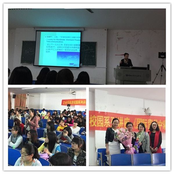 实训期间,安徽茶叶进出口公司单证部经理赵勤应邀以“国际贸易中常用的付款方式及风险的防范”为题做了专题讲座。赵勤详细讲解了国贸交易中如何实际操作以及可能出现的问题,将目前最专业、最前沿的知识带到了专业课堂中,并在互动环节就同学们的提问给予了精彩解答。