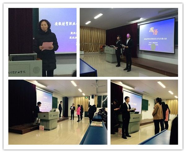 4月9日晚,学院首届成语大会在6102教室举行,基础部主任王静、行知管理学院党总支副书记唐学华和兄弟院校的文学社团负责人到会观赛。