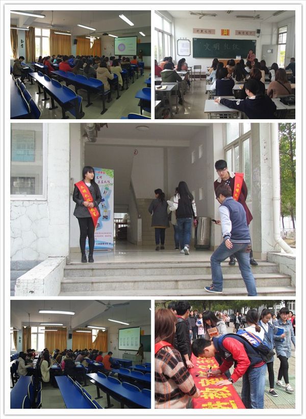 此次学风建设系列活动,行知管理学院以“辅导员跟班听课”为关键点、“主题班会”为结合点、“口语训练”为支撑点、“签名活动”为切入点、“礼仪督导文明进教室”为着眼点,形式多样,疏堵并行,不断探索和丰富学风建设的新途径、新方法和新内容,旨在倡导同学们进一步端正学习态度、净化学习风气,争做文明有礼的大学生,积极为学院的学风建设工作做出贡献。